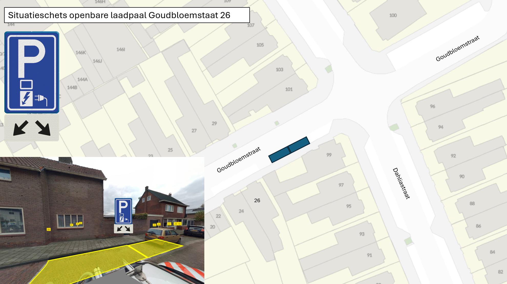 dat op basis van de hiervoor genoemde beleidsregel en de plankaart laadinfrastructuur een geschikte locatie is gevonden voor een laadvoorziening op de Goudbloemstraat ter hoogte van huisnummer 26;