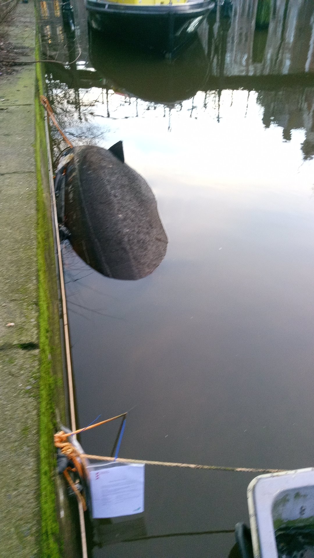 Mededeling opruimen gezonken vaartuig volgens de Wrakkenwet aan Oudezijds Voorburgwal 221 te Amsterdam