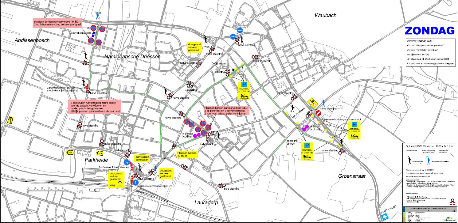 dat alle hierboven genoemde maatregelen gelden op 15 februari 2026 gedurende de hierboven genoemde tijdsperiodes of zoveel langer/korter als voor het evenement benodigd is.
