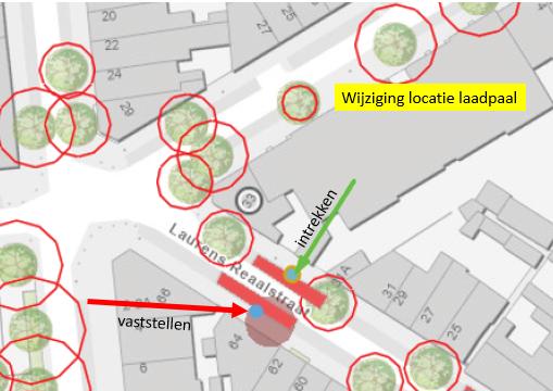 als gevolg hiervan het gepubliceerde besluit wordt ingetrokken en een nieuw besluit op een andere locatie in de Laurens Reaalstraat wordt vastgesteld;
