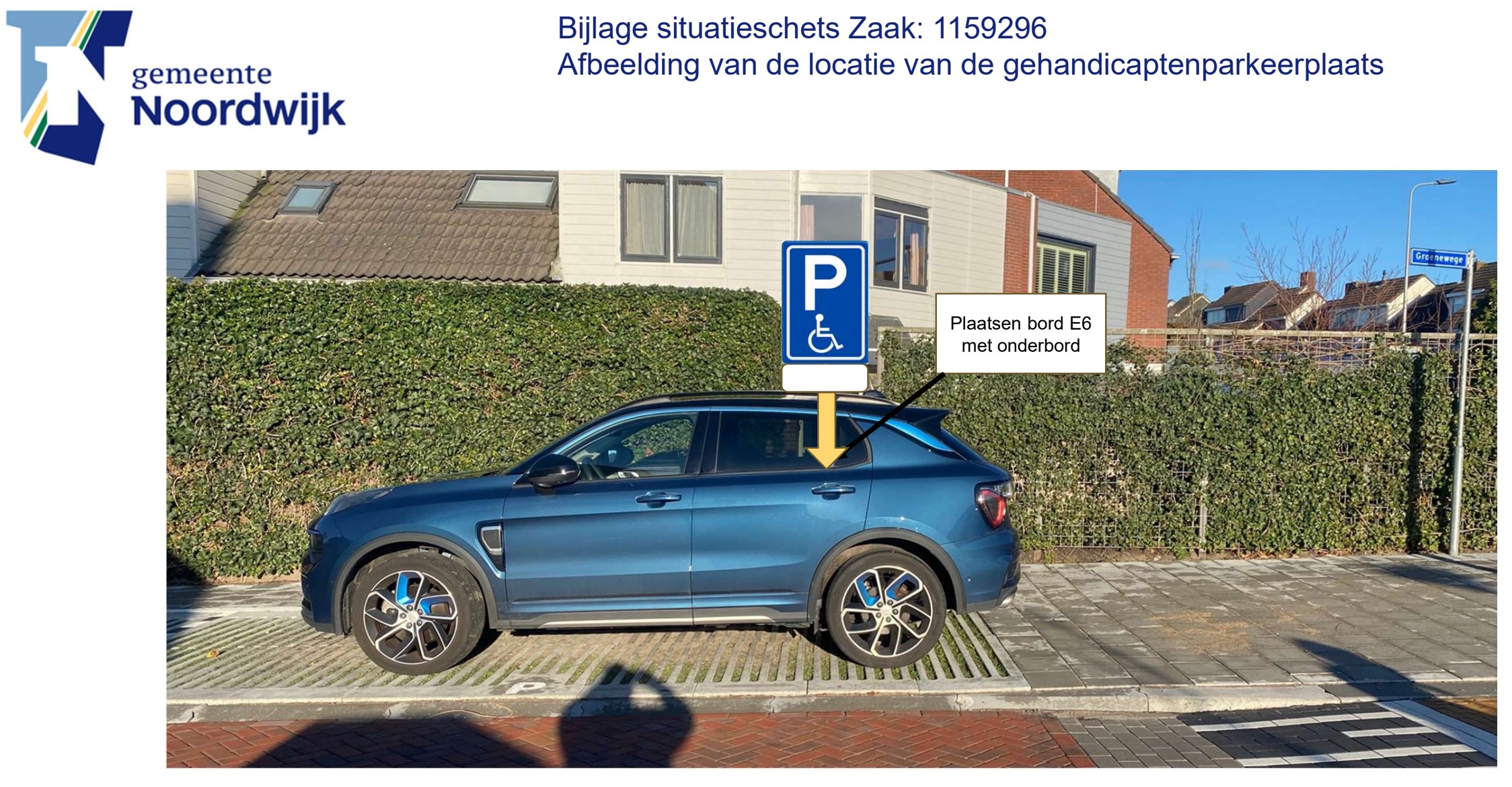 Instellen gehandicaptenparkeerplaats op kenteken op Groenewege in Noordwijkerhout
