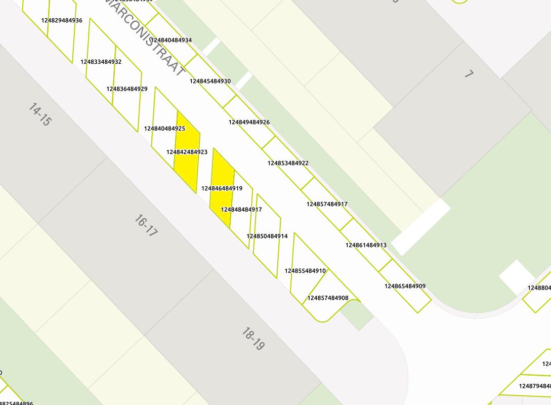 Twee parkeerplaatsen ter hoogte van perceel Marconistraat 16-17 (parkeervaknummers 124842484923 en 124846484919) aan te wijzen voor het opladen van elektrische voertuigen door het plaatsen van een bord conform model E8c van Bijlage I van het RVV 1990, gecombineerd met onderbord OB504 met daarop afgebeeld twee pijlen op een hoek van 45° (RVV 1990).