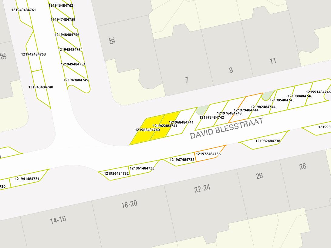 Twee parkeerplaatsen ter hoogte van perceel David Blesstraat 7 (parkeervaknummers 121962484740 en 121965484741) aan te wijzen voor het opladen van elektrische voertuigen door het plaatsen van een bord conform model E8c van Bijlage I van het RVV 1990, gecombineerd met onderbord OB504 met daarop afgebeeld twee pijlen op een hoek van 45° (RVV 1990).