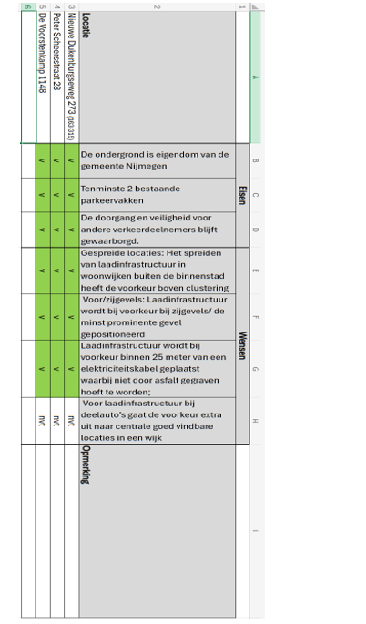 dat voor de toekomstige uitbreiding van het netwerk van openbare oplaadvoorzieningen in Nijmegen een plankaart is opgesteld met daarop locaties voor oplaadvoorzieningen;