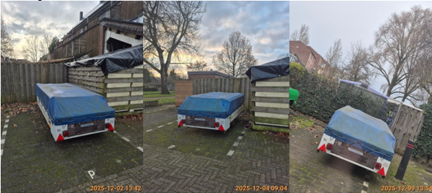 Op 7 januari 2026 maakten wij het voornemen bekend om dit kampeermiddel weg te slepen op grond van artikel 5:6 van de Algemene plaatselijke verordening gemeente Lingewaard 2026. Dit voornemen is gepubliceerd en op het voertuig geplakt. Het voertuig is geconstateerd op 28-11-2025, 02-12-2025, 03-12-2025, 04-12-2025, 08-12-2025, 09-12-2025, 13-12-2025 en 14-01-2026 aan het Ulkenpad in Huissen en in de omgeving daarvan. De eigenaar van het voertuig kon niet worden achterhaald.
