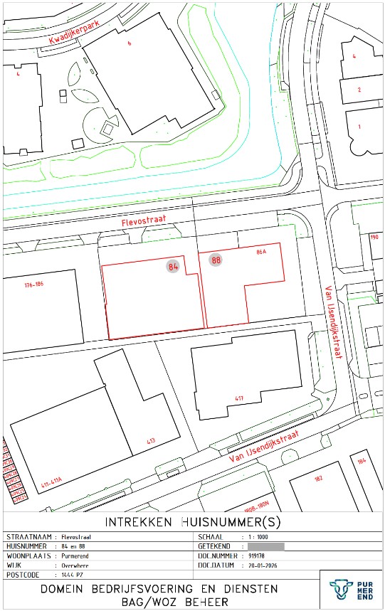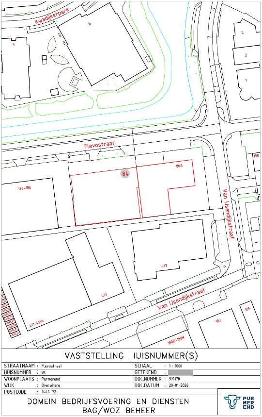 Kennisgeving huisnummerbesluit Flevostraat 84 en 88 Purmerend
