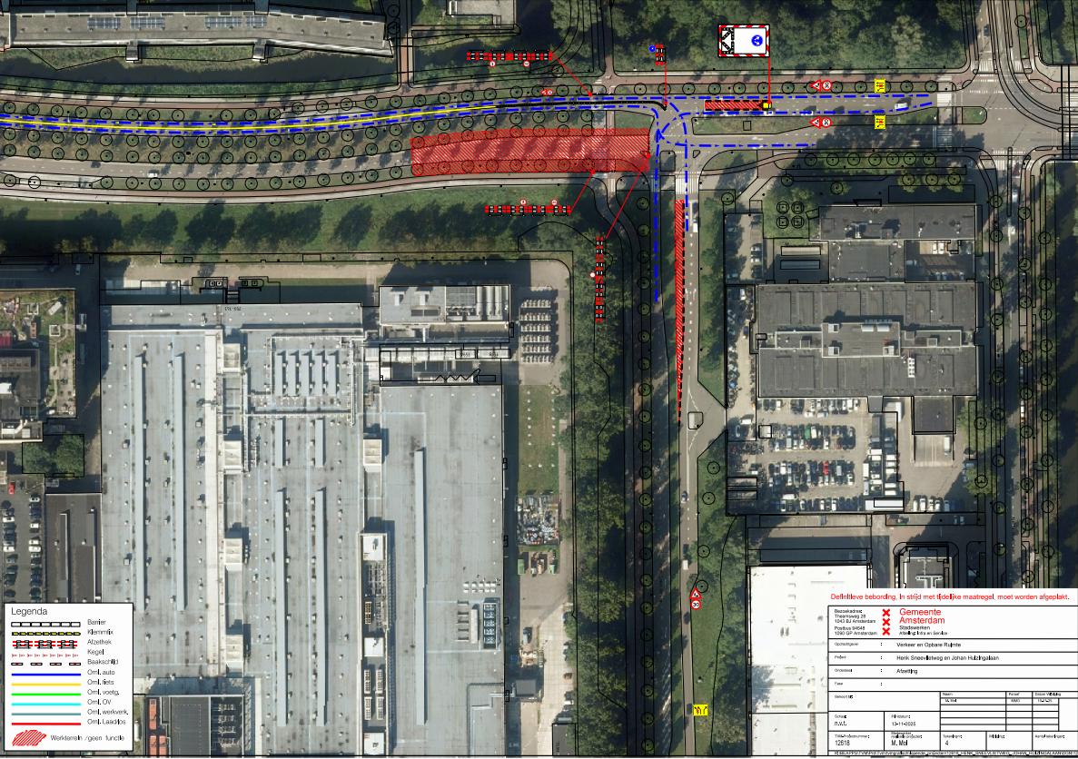 Amsterdam Nieuw-West, verkeersbesluit Johan Huizingalaan en Henk Sneevlietweg, instellen diverse tijdelijke verkeersmaatregelen