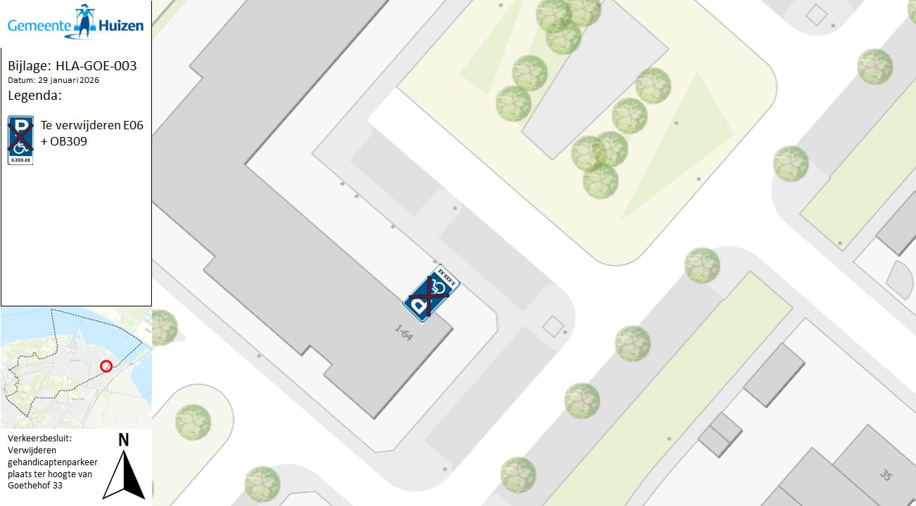 Verkeersbesluit gehandicaptenparkeerplaats verwijderen Goethehof 33 te Huizen