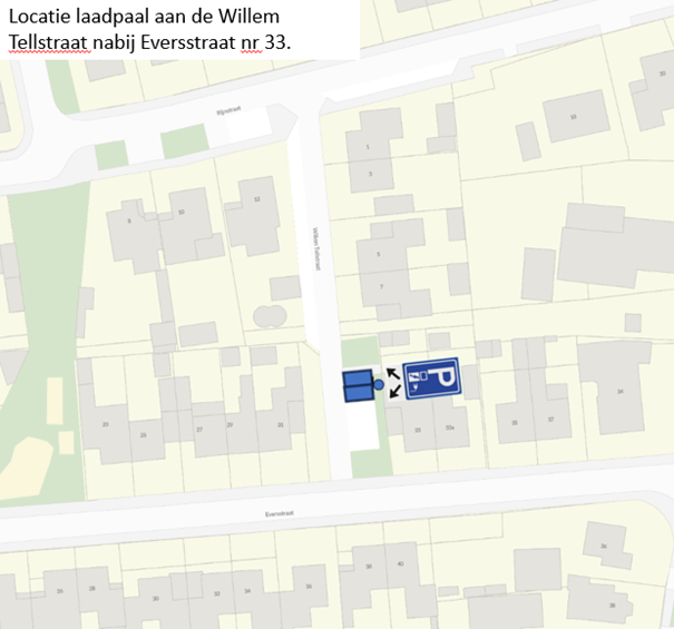 Verkeersbesluit voor het reserveren van parkeerplaatsen voor het opladen van elektrische voertuigen aan Willem Tellstraat naast Eversstraat 33 te Loo