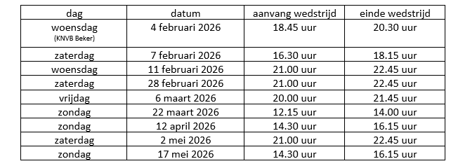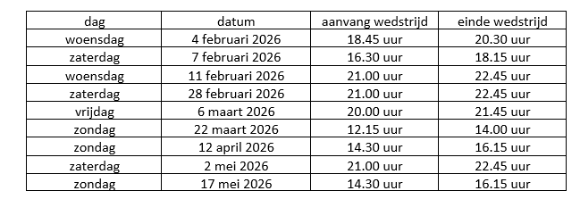 dat er in de loop van het seizoen mogelijk wedstrijden worden ingelast c.q. er wedstrijddata of tijdstippen worden gewijzigd;