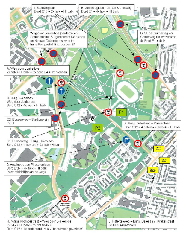 dat de afzettingen worden bewaakt en er wordt doorverwezen naar de beschikbare parkeergelegenheid in de omgeving;