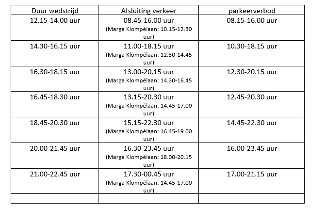 dat het in verband met het voorgaande gewenst is om op de wedstrijddagen een aantal wegen rond het stadion af te sluiten voor gemotoriseerd verkeer uitgezonderd bestemmingsverkeer;