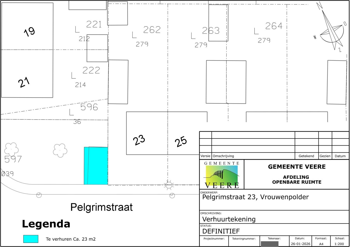 De gemeente Veere heeft het voornemen om een groenstrook van het perceel, gelegen bij en grenzend aan Dorpsdijk 37 te Vrouwenpolder, kadastraal bekend gemeente Veere, sectie L nummer 1030, alsmede een groenstrook van het perceel, gelegen bij en grenzend aan Pelgrimstraat 23 te Vrouwenpolder, kadastraal bekend gemeente Veere, sectie L nummer 597 te verhuren aan de aangrenzende perceelseigenaren. De te verhuren groenstroken zijn respectievelijk in het groen en blauw weergegeven op bijgaande verhuurtekeningen.