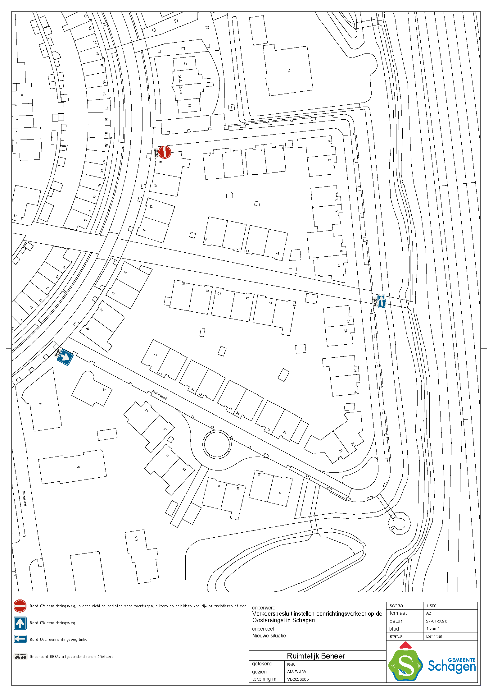Gemeente Schagen- Verkeersbesluit instellen van éénrichtingsverkeer op de Oostersingel, Schagen.