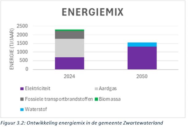 In 2050 wil Nederland volledig klimaatneutraal zijn. Dit betekent dat Nederland netto geen broeikasgassen meer uitstoot. Datgene wat nog uitgestoten wordt, is dan gecompenseerd door CO₂- opslag of bomen. Om in 2050 volledig klimaatneutraal te zijn, neemt ook Zwartewaterland afscheid van fossiele brandstoffen zoals aardgas, diesel en benzine. Deze uitfasering is essentieel voor het behalen van onze doelen op het gebied van CO₂-reductie, energiebesparing en een betrouwbaar energiesysteem. Hoe deze transitie verloopt, is afhankelijk van vele factoren. Voor een deel is dit een autonoom proces dat aangestuurd wordt door (inter)nationale ontwikkelingen. Hoewel het lastig is, is het belangrijk om een beeld te schetsen van de verwachte toekomstige ontwikkelingen en dit te gebruiken als basis voor de verdere uitwerking van beleid.