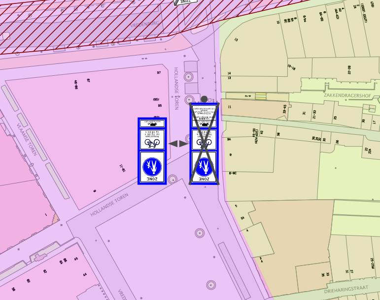 - De binnengrens bij de stalling Zadelstraat komt te vervallen. De afstand vanaf de buitengrens naar de stalling is slechts 40 meter en zorgt in de huidige situatie voor verwarring.
