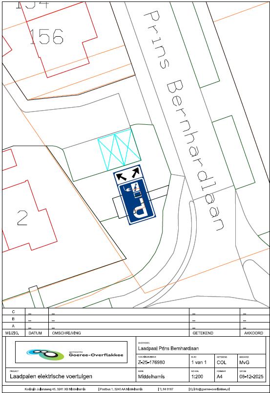 AANWIJZEN PARKEERPLAATSEN VOOR OPLADEN ELEKTRISCHE VOERTUIGEN PRINS BERNHARDLAAN TE MIDDELHARNIS