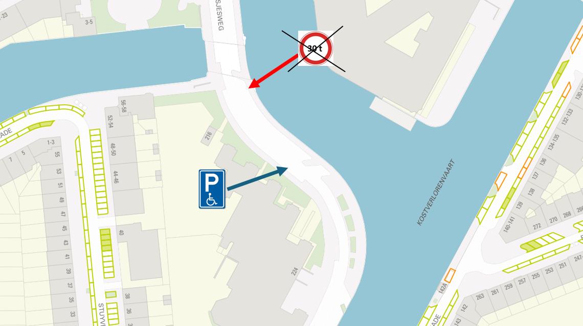 bij bovengenoemde herstelwerkzaamheden tevens een algemene gehandicaptenparkeerplaats zal worden aangelegd ten behoeve van personen met een handicap die gebruik maken van diverse voorzieningen in bedrijfsverzamelgebouw ‘de Admiraal’, ter hoogte van Baarsjesweg 224 (parkeervaknummer nog niet bekend);