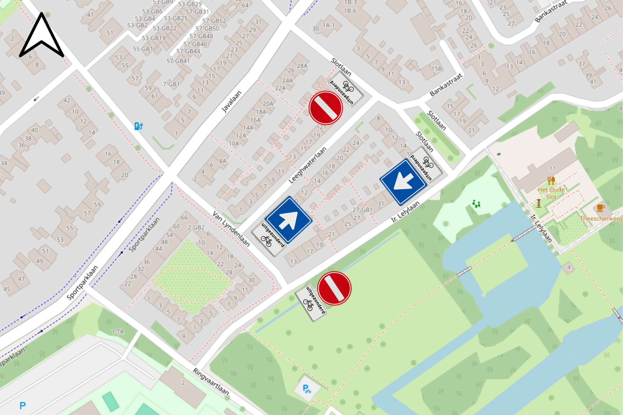 dat een rijrichting van de Slotlaan naar de Van Lyndenlaan passend is, omdat de parkeerplaatsen voornamelijk rechts van de rijrichting liggen;