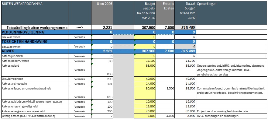 Voor de overige projecten is voor 2026 naar inschatting de volgende inzet benodigd Voor dit taakblad is 3.220 uren en 2,30 fte benodigd in 2026. |