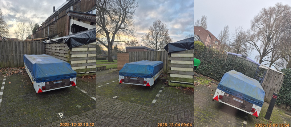 De vouwwagen is geconstateerd op 28-11-2025, 02-12-2025, 03-12-2025, 04-12-2025, 08-12-2025, 09-12-2025 en 13-12-2025 aan het Ulkenpad in Huissen en in de omgeving daarvan. Wij zijn voornemens om het voertuig weg te slepen op grond van artikel 5:6 van de Algemene plaatselijke verordening gemeente Lingewaard 2025. De eigenaar van het voertuig kan niet worden achterhaald.