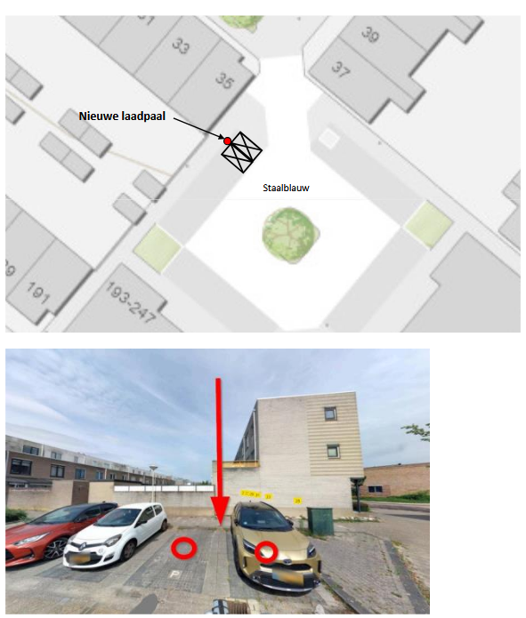 VERKEERSBESLUIT AANWIJZEN PARKEERPLAATSEN VOOR ELEKTRISCHE VOERTUIGEN LANGS STAALBLAUW