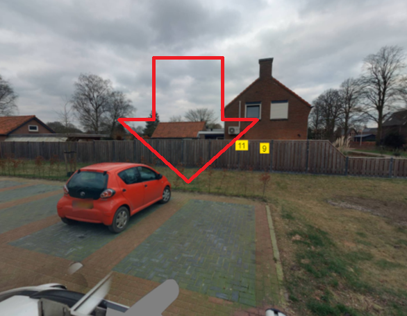 dat deze maatregel gerealiseerd kan worden door het plaatsen van verkeersbord E8c van bijlage 1 van het RVV 1990 inclusief onderbord OB504 ‘twee pijlen’, bij de parkeerplaatsen ter hoogte van Domineeskamp 9;