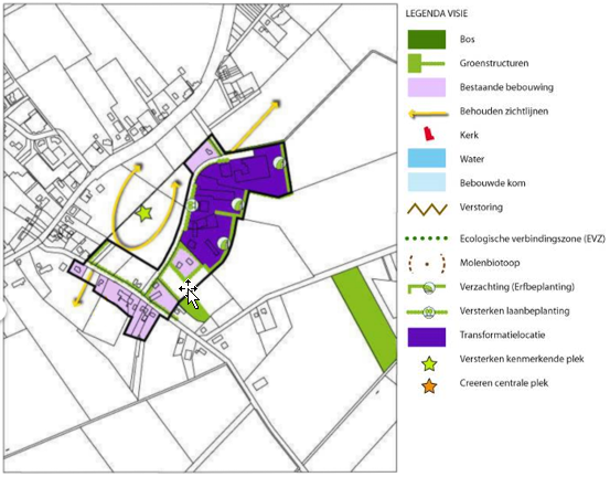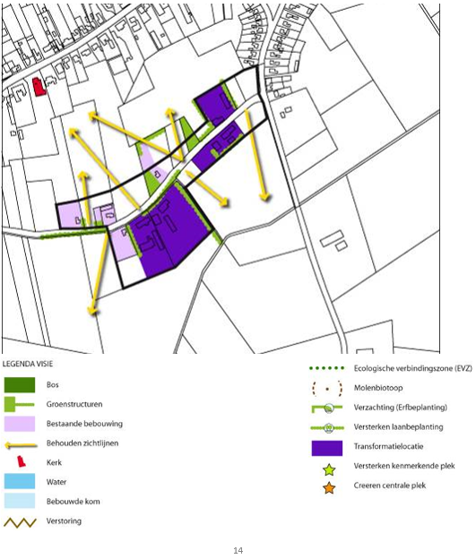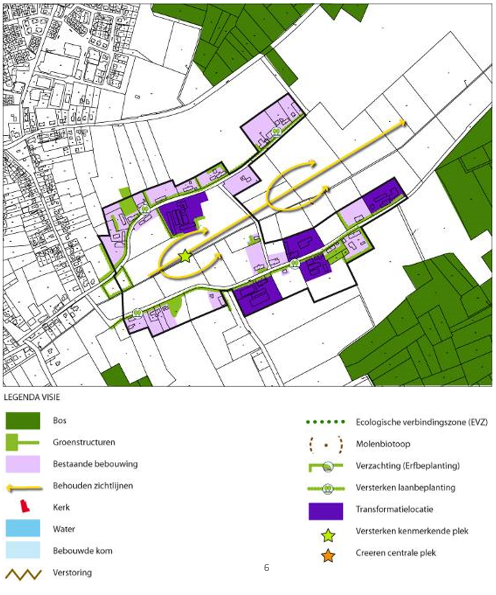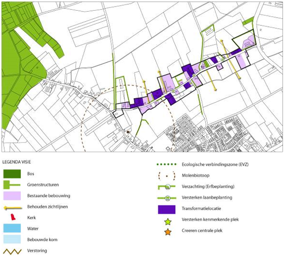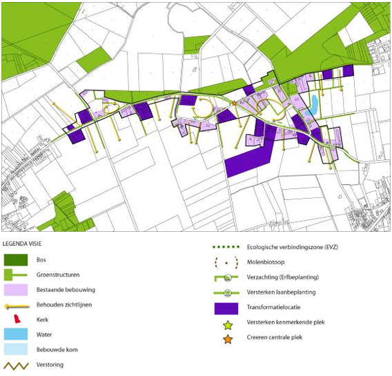 De ligging van de bebouwingsconcentraties is op de bijgevoegde afbeelding aangegeven. Per bebouwingsconcentratie is een analyse (ruimtelijk en functioneel) en een streefbeeld (visie) met een afbeelding aangegeven. Het streefbeeld kan benut worden bij de beoordeling van individuele verzoeken in het licht van de verbetering van de ruimtelijke (lees: stedenbouwkundige en landschappelijke) kwaliteit.