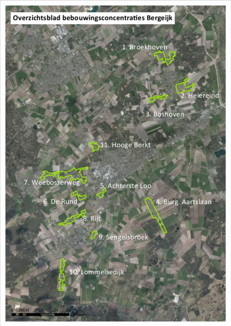 Vanuit de oorspronkelijke gebiedsvisie is voor elke bebouwingsconcentratie de beschrijving in geactualiseerde vorm overgenomen en is per gebied een actuele luchtfoto met de begrenzing van de gebieden opgenomen. Voorliggend document betreft een overzicht van de bebouwingsconcentraties die gemeente Bergeijk heeft aangewezen.
