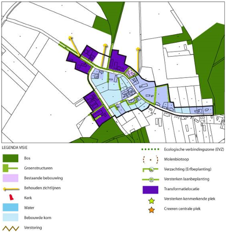 De aanwezige groenelementen zijn bepalend voor de beleving en waardering van de bebouwingsconcentratie. De vele laanbeplanting, erfbeplanting en de in de omgeving liggende bossen geven een gevoel van ruimtelijke begrenzing. Door het in stand houden en het versterken van de aanwezige elementen en structuren wordt de kwaliteit van het gebied versterkt.