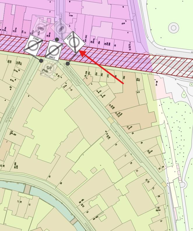 Nobeldwarsstraat (ter hoogte van het pand Nobeldwarsstraat huisnummer 2a nabij de hoek met de Nobelstraat; wegvak tussen het Hieronymusplantsoen en de Nobelstraat)