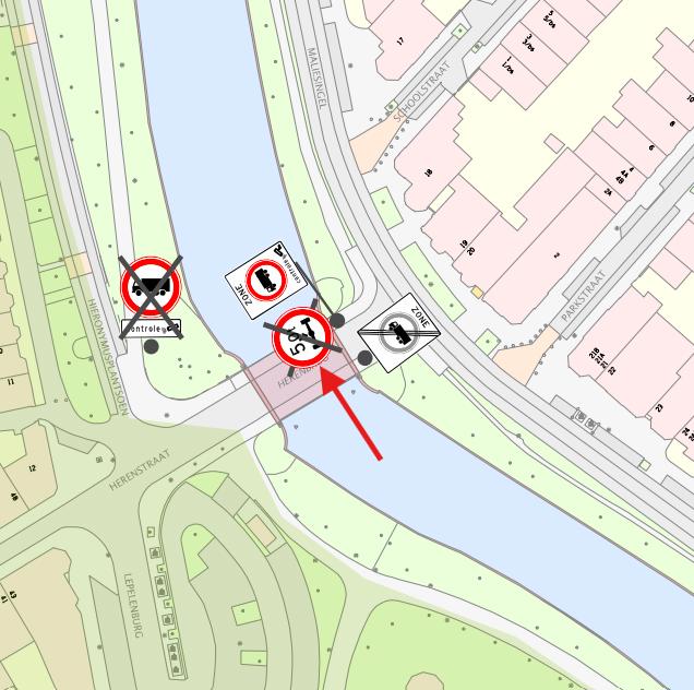 Herenb r ug (ter hoogte van/tegenover het pand Maliesingel huisnummer 20; wegvak: tussen de Maliesingel en het Hieronymusplantsoen/Herenstraat)