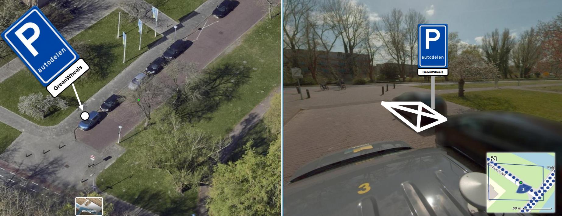 De locatie waar de parkeergelegenheid voor de deelauto van GreenWheels wordt aangewezen is beoordeeld op criteria zoals een parkeerdruk lager dan 90%, niet direct voor het uitzicht van een woning en geen twee deelauto’s dicht bij elkaar.