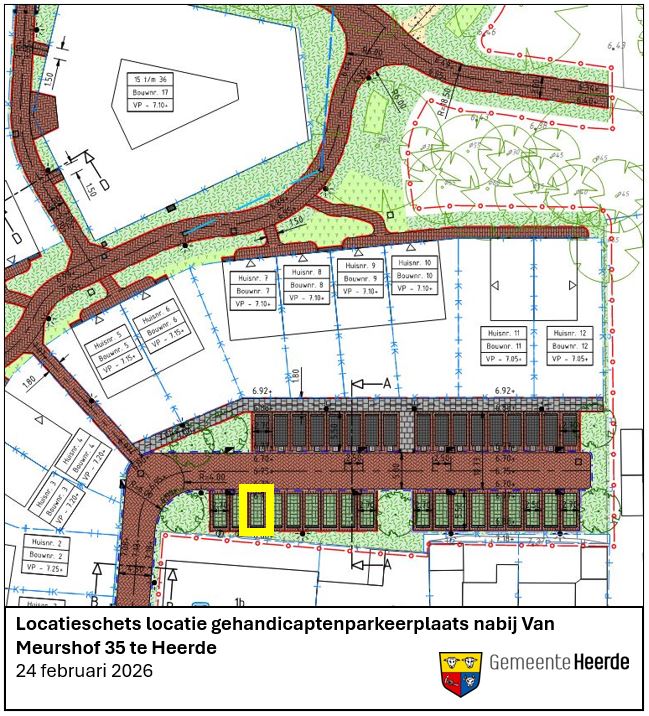 Locatieschets nieuwe locatie gehandicaptenparkeerplaats nabij Van Meurshof 35 te Heerde
