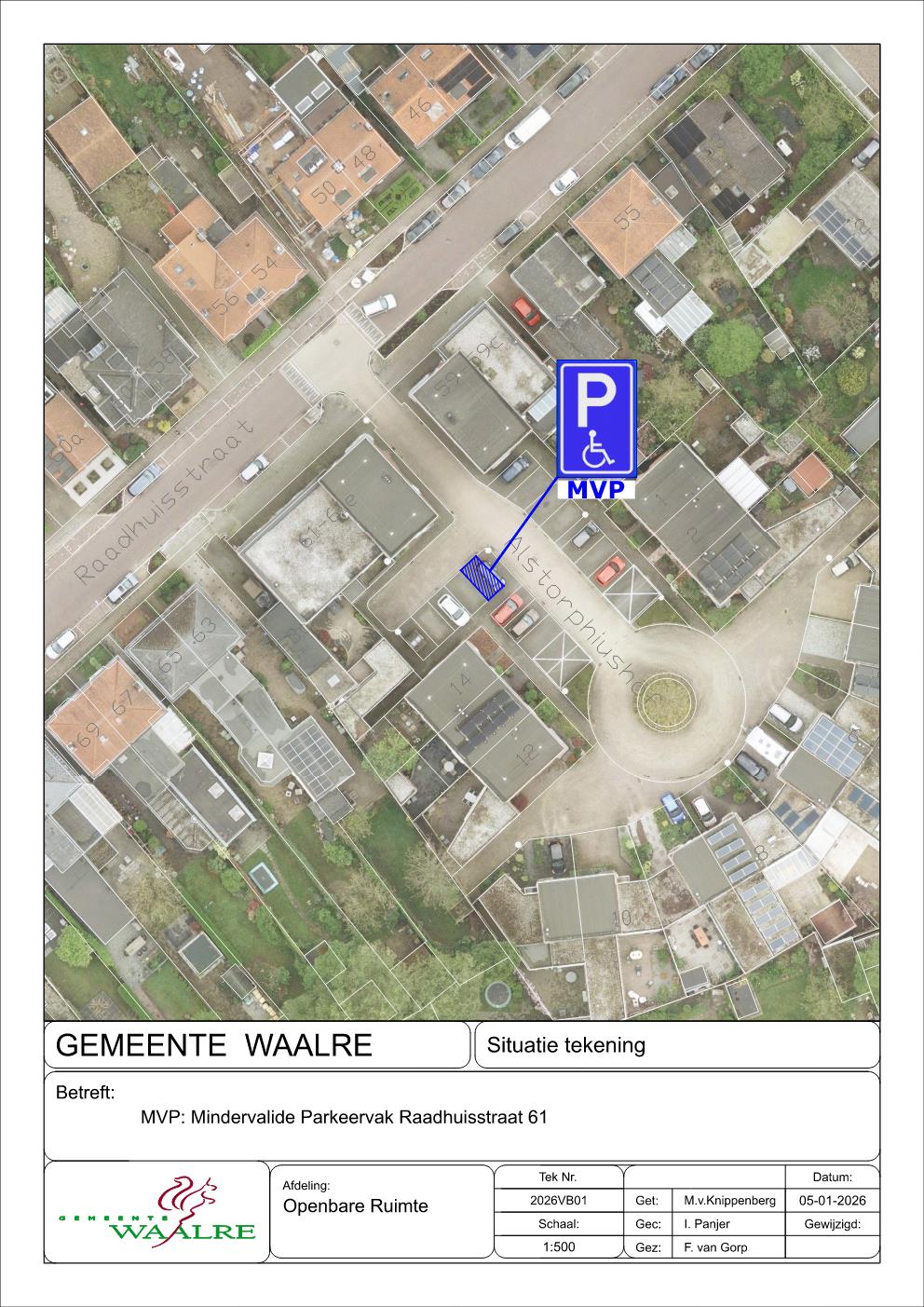 Tot het aanleggen van een individuele gehandicaptenparkeerplaats aan de Raadhuisstraat 61 te Waalre, middels plaatsing van bord E06 RVV in combinatie met een kentekenplaat, conform bijbehorende tekening.
