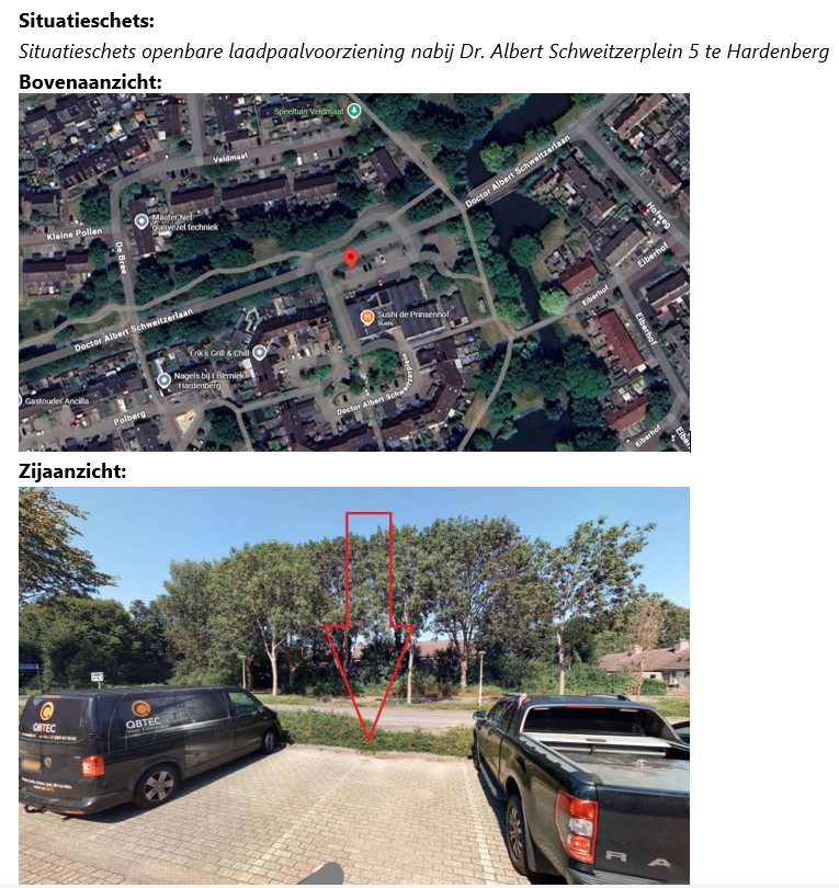 -dat de concessiehouder voorstelt om een openbare laadpaal te plaatsen nabij Dr. Albert Schweitzerplein 5 te Hardenberg conform de plankaart;