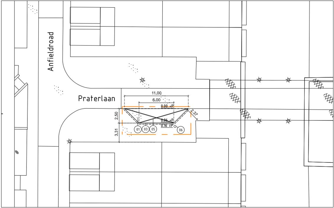 Zoals aangegeven op onderstaande tekeningen.