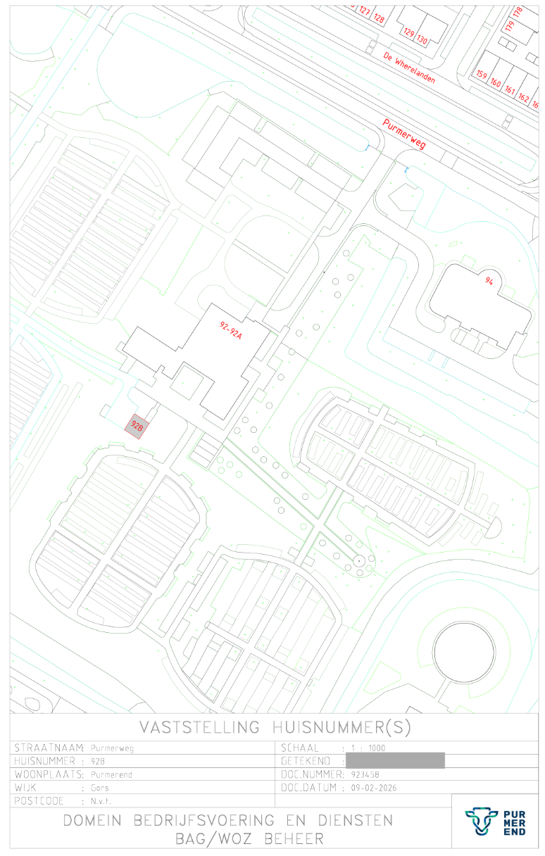 Kennisgeving huisnummerbesluit Purmerweg 92B