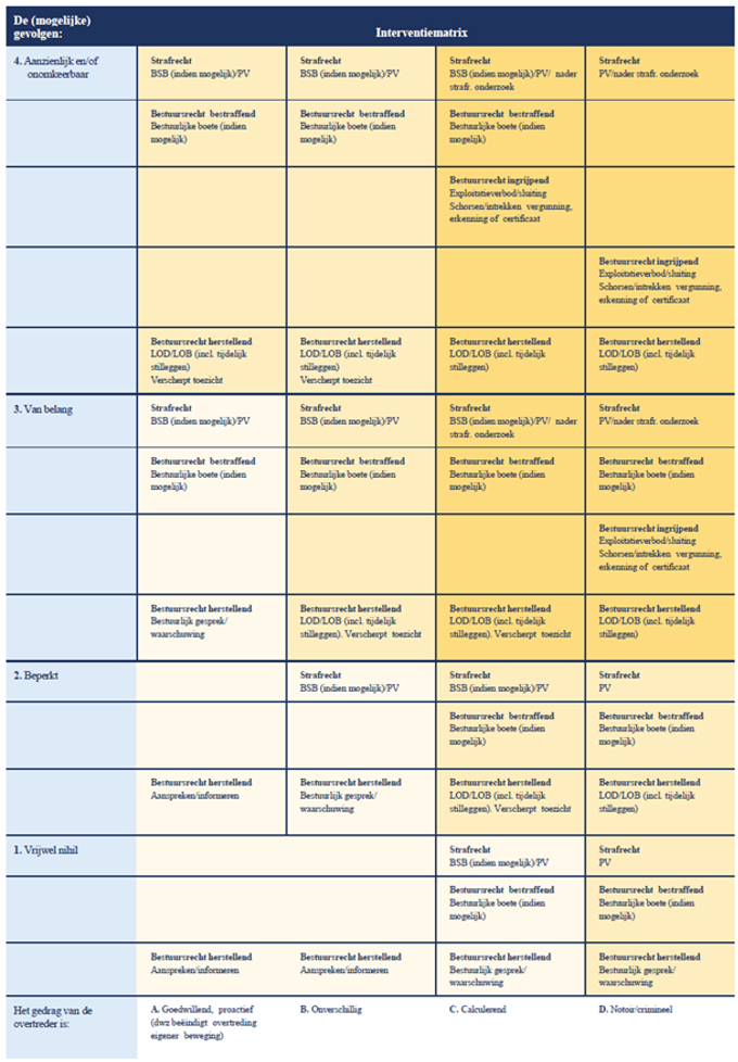 Dit is ook de bedoeling van de wetgever (MvT Omgevingswet, Kamerstukken II 2013/14, 33962, nr. 3, p. 48): “Wanneer de gevolgen van een overtreding beperkt zijn en de overtreder normaal gesproken de regels naleeft en de betreffende overtreding onbedoeld heeft begaan, zal kunnen worden volstaan met een lichte interventie, zoals een waarschuwing.”