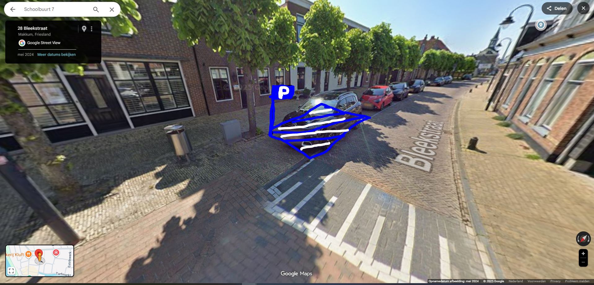 I. Door plaatsing van bord E6 van bijlage 1 van het Reglement verkeersregels en verkeerstekens 1990 een invalidenparkeerplaats in te richten ter hoogte van het adres Schoolbuurt 7 te Makkum (De Schoolbuurt is een steeg en niet toegankelijk voor auto's. De Bleekstraat staat haaks op de Schoolbuurt. De Bleekstraat is de dichtstbijzijnde straat voor aanvrager. Dit wordt gerealiseerd door een parkeervak in de Bleekstraat, ter hoogte van perceel 7, in te richten als gehandicaptenparkeerplaats.);