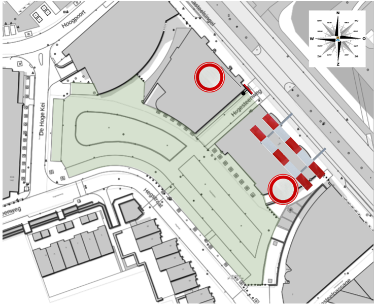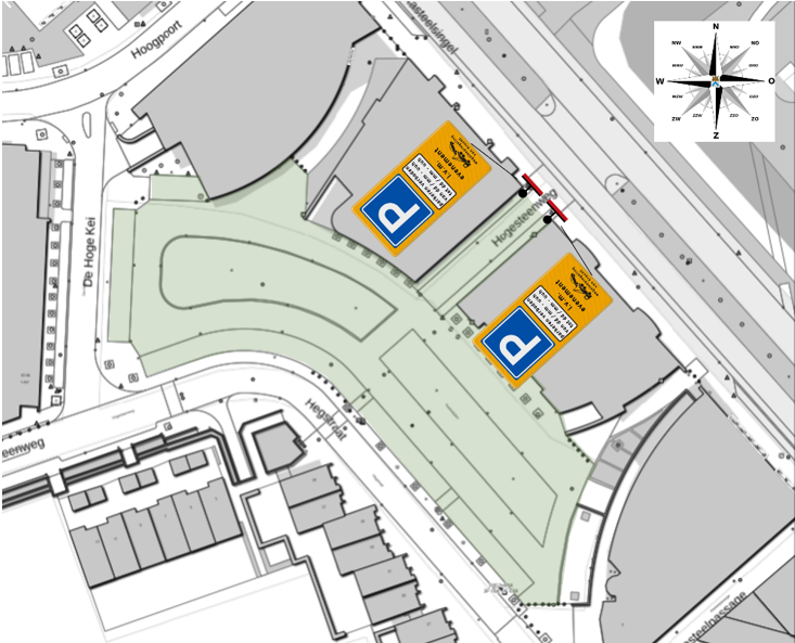 Locatie 1: De toegangsweg Hogesteenweg naar Kasteelplein vanuit de Kasteelsingel voor motorvoertuigen