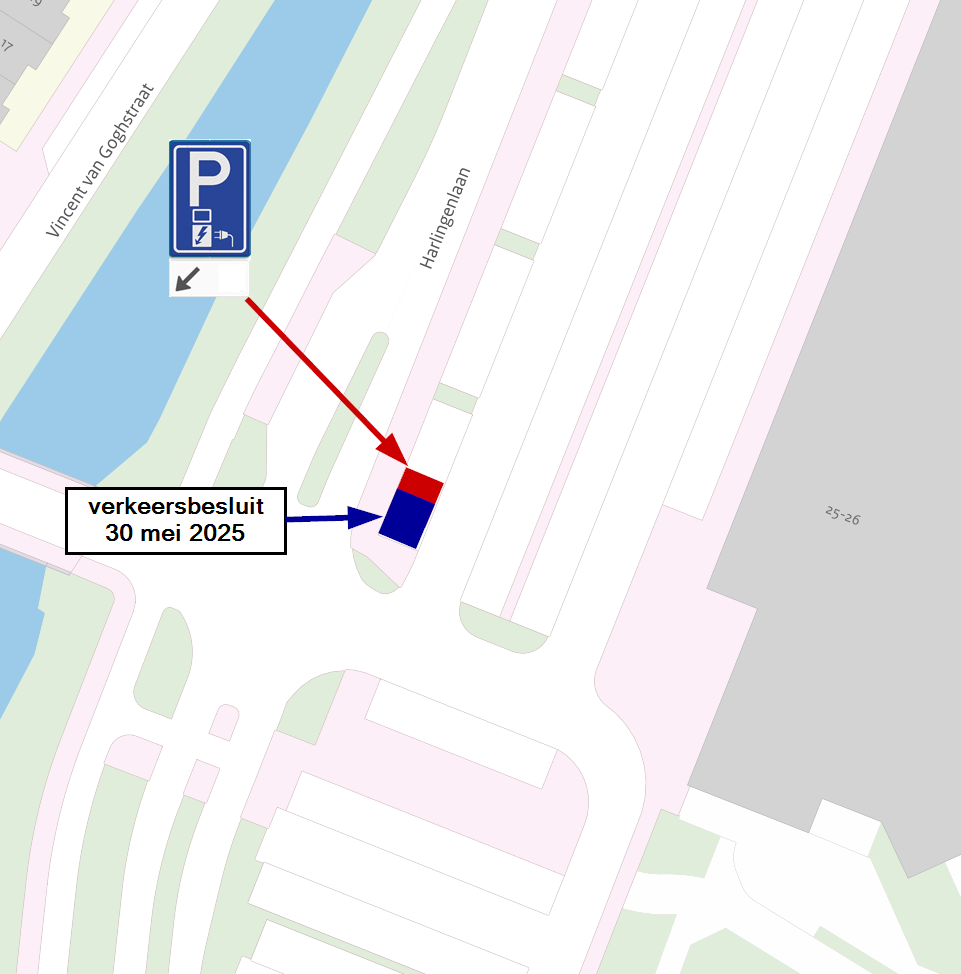 Dat de gemeente daarvoor op 30 mei 2025 een verkeersbesluit heeft gepubliceerd om twee parkeervakken op het parkeerterrein aan de Harlingenlaan te reserveren voor het opladen van elektrische voertuigen;