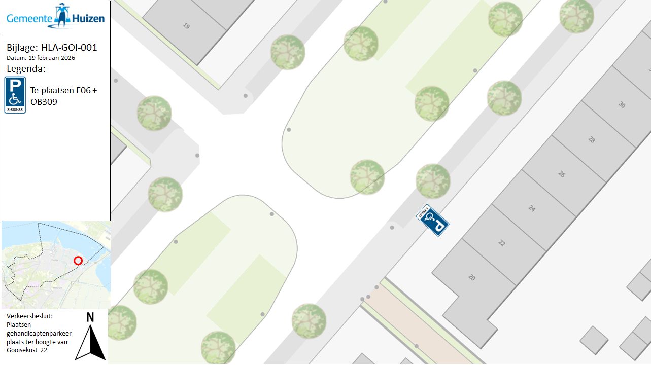 Verkeersbesluit gehandicaptenparkeerplaats plaatsen op kenteken Gooisekust 22 te Huizen