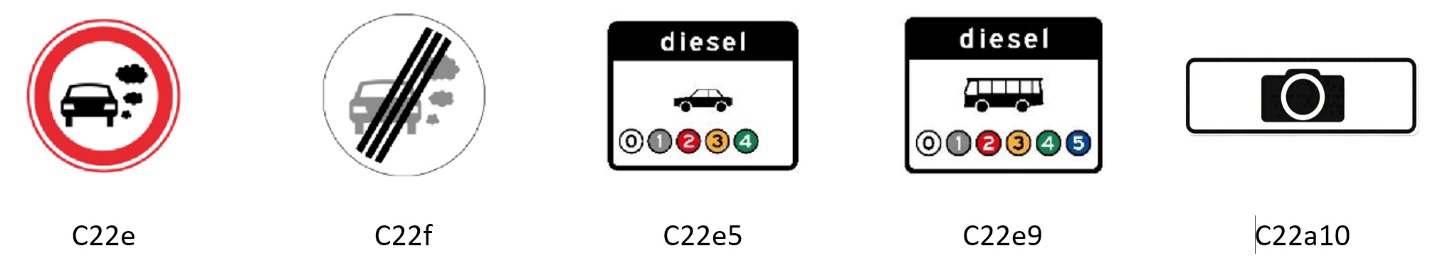 - milieuzone voor dieselpersonenauto’s, toegankelijk voor emissieklasse 5 en 6 (C22e5)
