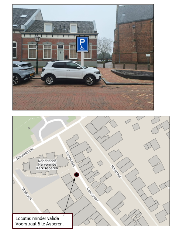Verkeersbesluit voor het aanwijzen van een minder valide parkeerplaats aan Voorstraat 5 te Asperen