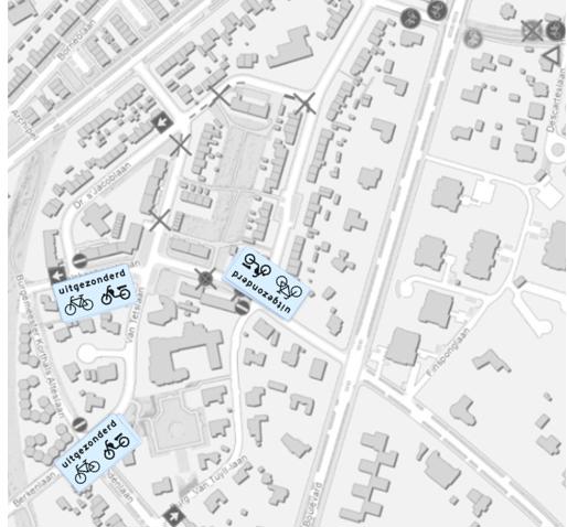 Echter is toen niet aangegeven dat dit niet geldt voor fiets- en bromfietsverkeer. De weg is namelijk wel breed genoeg dat het fietsverkeer twee richtingen op kan fietsen. Met het instellen van de onderborden OB54 zal het er toe leiden dat fietsers en bromfietsers niet onnodig om rijden.