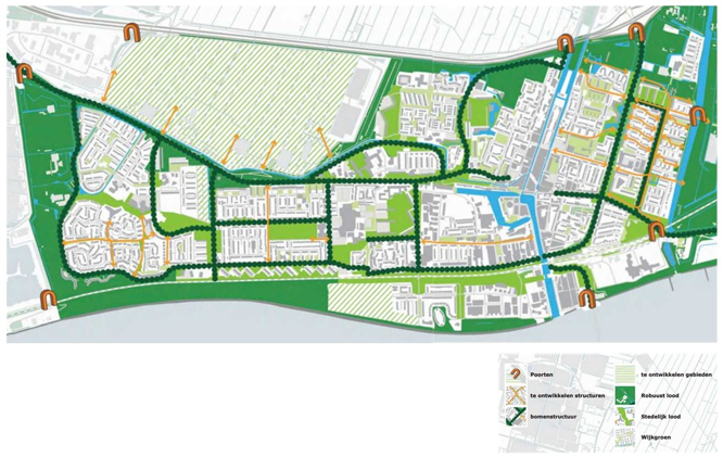 In de Visie Openbare Ruimte (afgekort VOR) uit 2016 staat de kaart hoofdgroenstructuur (het stedelijk lood, zie legenda), het is een abstracte weergave. De onderstaande kaart, ook uit de VOR 2016, is een uitwerking daarvan. De kaart geeft een groennetwerk aan die bestaat uit parken, bermen, de rivier, kanalen en andere watergangen. Nu tien jaar later zijn nieuwe wijken gebouwd en meer ontwikkelingen komen er aan. De stad is continue in beweging, dat maakt het behoud van een hoofd groenstructuur zo belangrijk. Het doel van dit groene netwerk is om de openbare ruimte goed bereikbaar te houden voor de natuur, voetgangers en fietsers. De gemeente wil de bekende knelpunten oplossen en vooral nieuwe blokkades voorkomen. Er is daarom bijzondere aandacht voor de ecologie: de levende natuur moet vrij kunnen bewegen, hiervoor maken we goede aansluiting op de terreinen buiten de gemeentegrens. In de natuurzones worden bomen gebruikt die ecologisch belangrijk zijn.