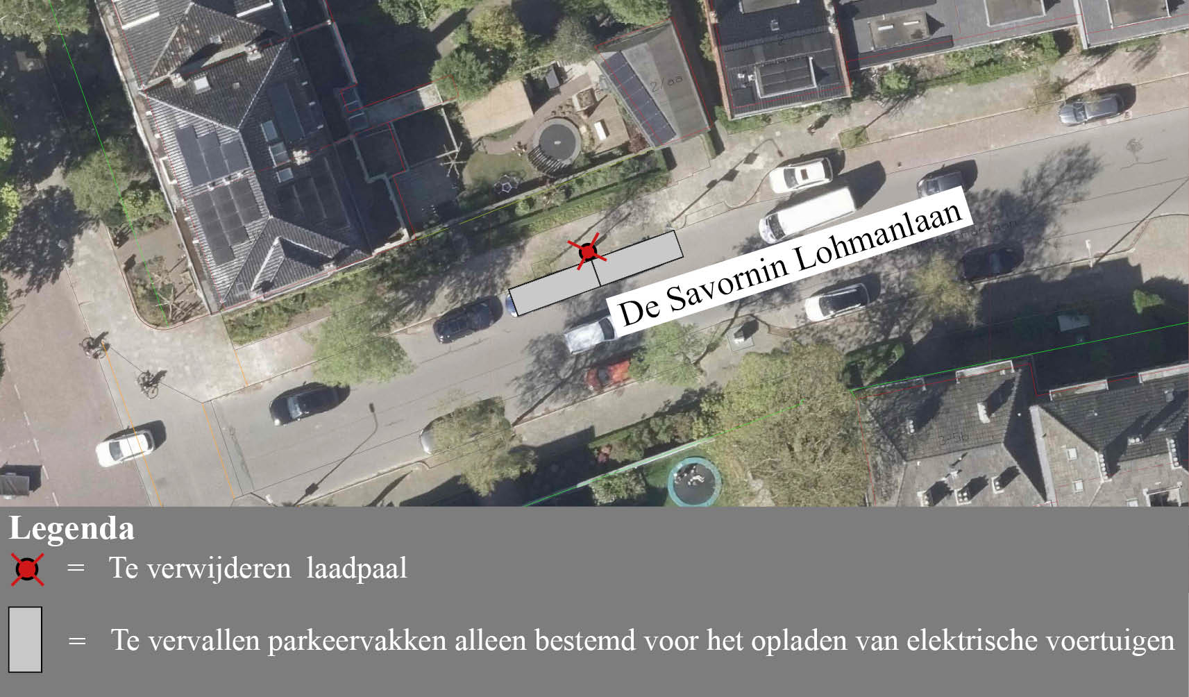 Bij de vervallen laadlocatie, aan de noordzijde van De Savornin Lohmanlaan ter plaatse van nummer 2aa, bord E8c met een onderbord met daarop pijlen te verwijderen. De aanwijzing van de twee eerder aangewezen parkeervakken (alleen bestemd voor het opladen van elektrische voertuigen) bij deze laadlocatie komt daarmee te vervallen;