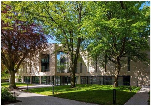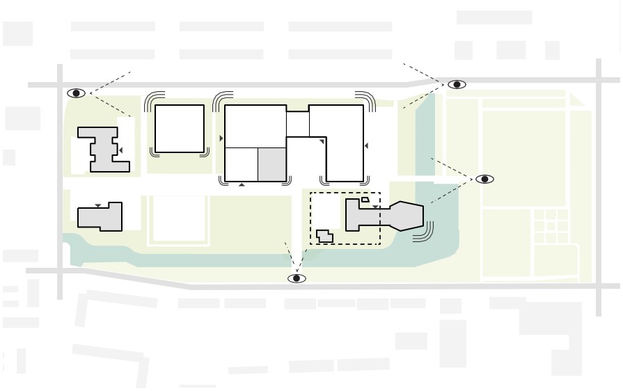 De architectuur van de nieuwbouw voegt zich naar de ruimtelijke structuur van het gebied. Dit betekent een formeel karakter aan de zijde van de Rembrandtlaan, de Vondellaan en het Vondelpark. Aan de zijde van de centrale loper kent de nieuwbouw een meer uitnodigend karakter. Subtiele verschillen in de gevel dragen bij aan het groene en formele karakter van de Rembrandtlaan. Aan de zijde van de Vondellaan zijn de gebouwen sterk geleed om zo de ontstane buitenruimte als groene ruimte te verankeren in het lineaire, groene karakter van de Vondellaan. Aan de centrale loper voegt de bebouwing zich naar de voetgangerszone met (sub-)entreegebieden voor de diverse programma-onderdelen.