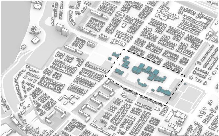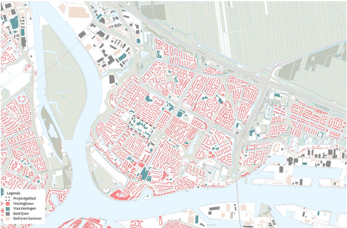Van der Palmgebied als onderscheidend cluster qua programma, schaal en architectuur binnen de buurt.